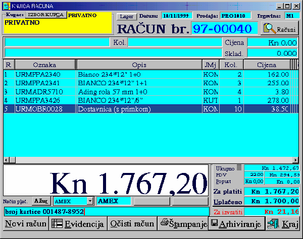 KNJIGA MALOPRODAJNIH RAČUNA