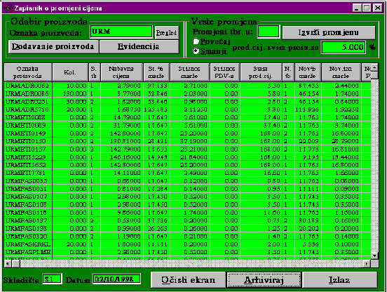 MALOPRODAJNI ZAPISNIK O PROMJENI CIJENE