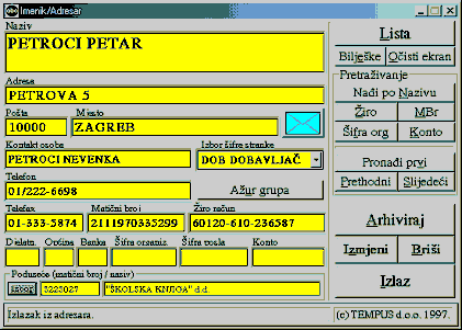 - pretraživanje po nazivu, matičnom broju, telefonu,