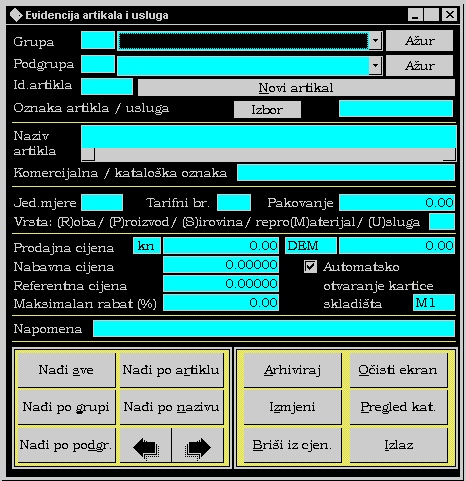 REGISTAR GRUPA, PODGRUPA ARTIKALA