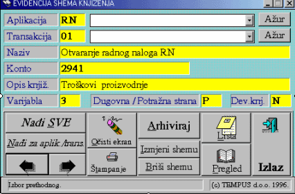 - unos, arhiviranje, izmjena i brisanje shema knjiženja;
